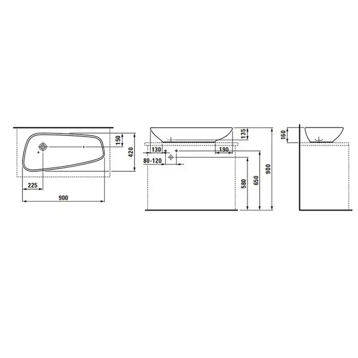 Laufen Palomba Раковина-чаша 90х42хh16 cм, без отв., цвет белый 8.1680.1.000.112.1