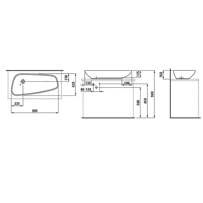 Laufen Palomba Раковина-чаша 90х42хh16 cм, без перелива, цвет белый 8.1680.1.400.112.1