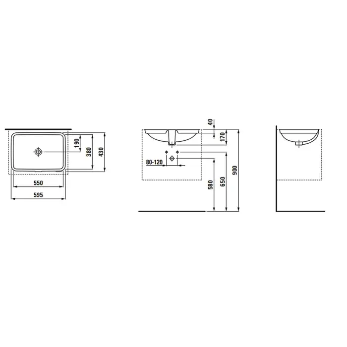 Laufen Pro Раковина 59,5х43хh17 см, без отв., под смеситель, цвет: белый 8.1196.3.400.109.1