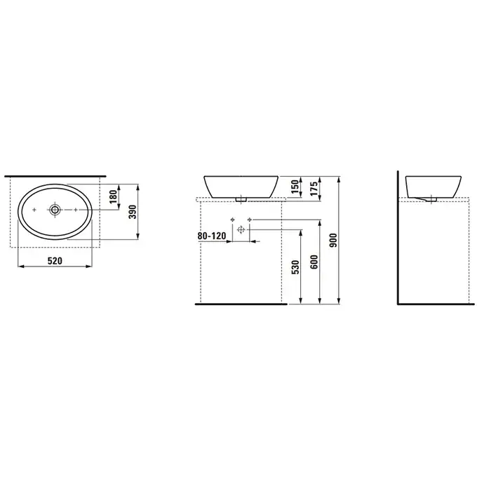 Laufen Pro Раковина-чаша 52х39хh15 см, без отв., под смеситель, цвет: белый 8.1296.4.400.109.1