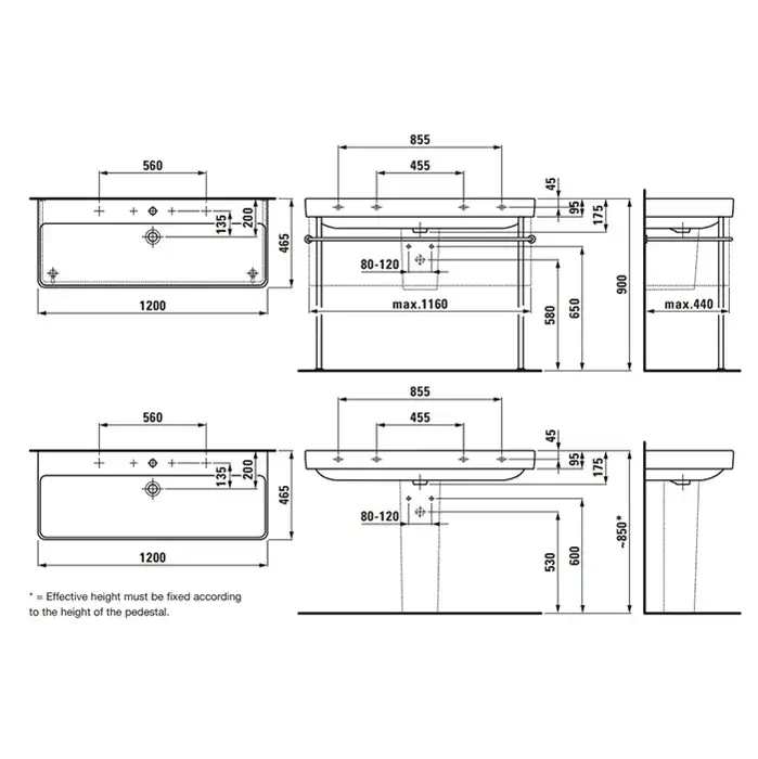Laufen Pro S Раковина 120 см, без отв., под смеситель, цвет: белый глянцевый 8.1496.5.000.109.1