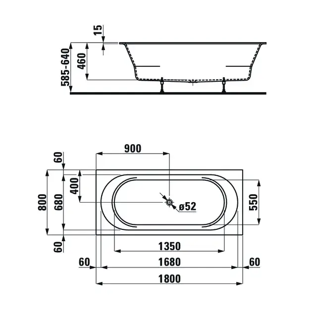 Laufen Pro Ванна Drop-in прямоугольная 180x80 см, материал marbond, цвет белый 2.4095.0.000.000.1