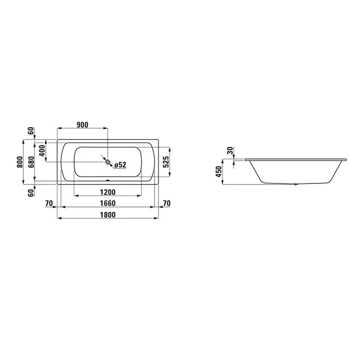 Laufen Pro Ванна стальная 180х80 см, выпуск по центру, цвет: белый 2.2795.0.000.040.1