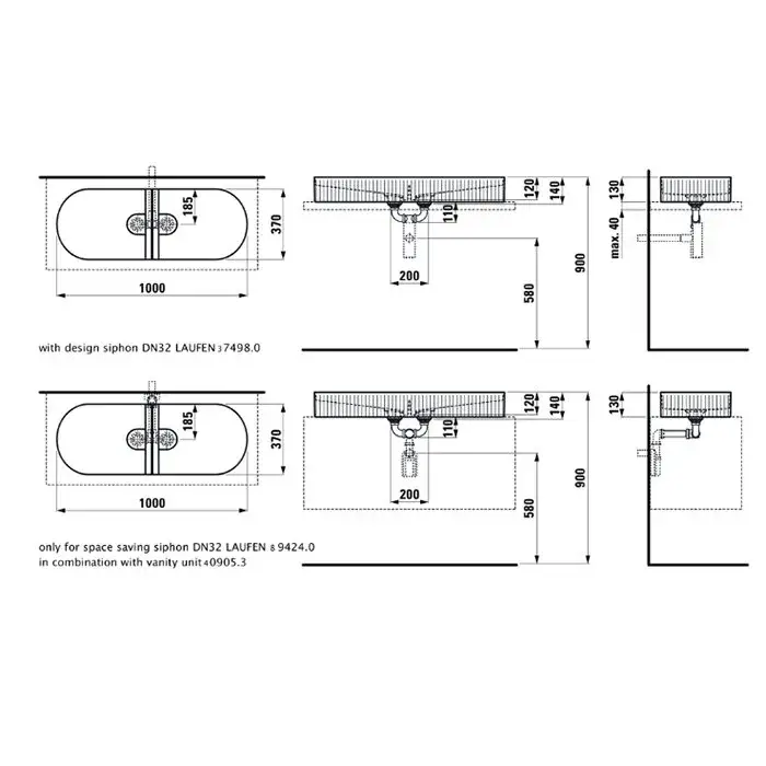Laufen Sonar Раковина-чаша двойная 100x37хh13 см, без перелива, цвет белый 8.1234.9.000.112.1