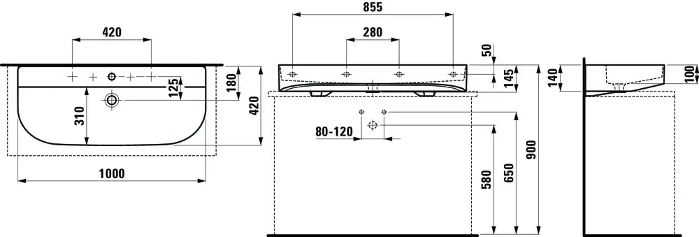 Laufen Sonar Раковина накладная овальная на 1 отв. 100х42х14h см, цвет: белый 8.1634.7.000.104.1