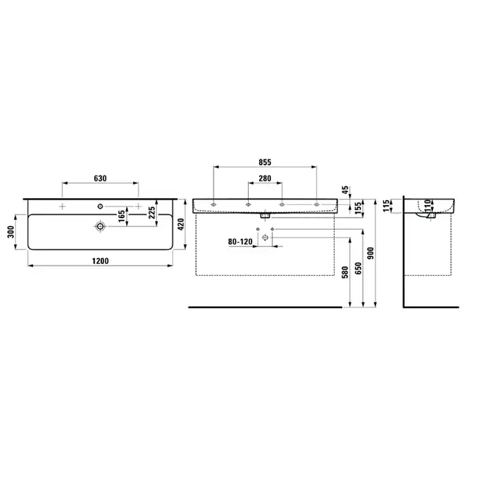 Laufen Val Раковина 120х42хh11,5 см, с 2 отв. под смеситель, цвет белый 8.1028.9.000.107.1