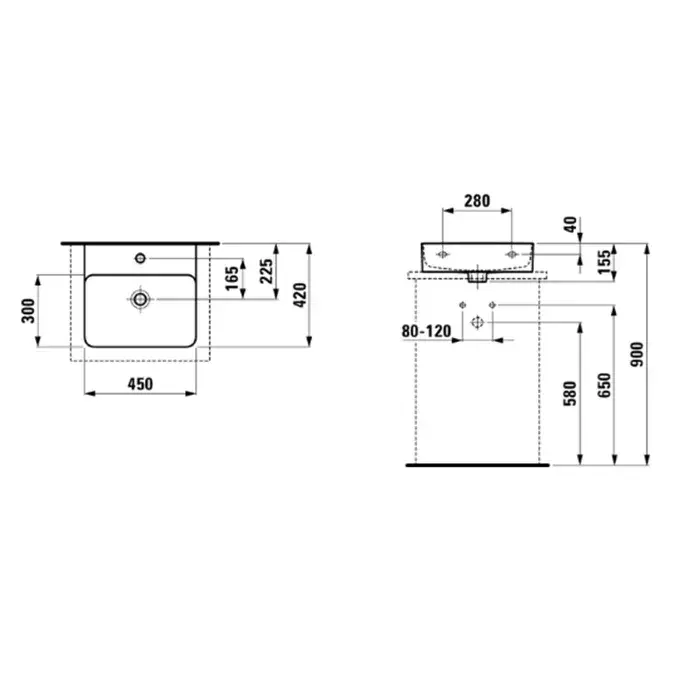 Laufen Val Раковина мини подвесная прямоуг. на 1 отв. 45х42х11h см, цвет: белый 8.1528.1.000.109.1
