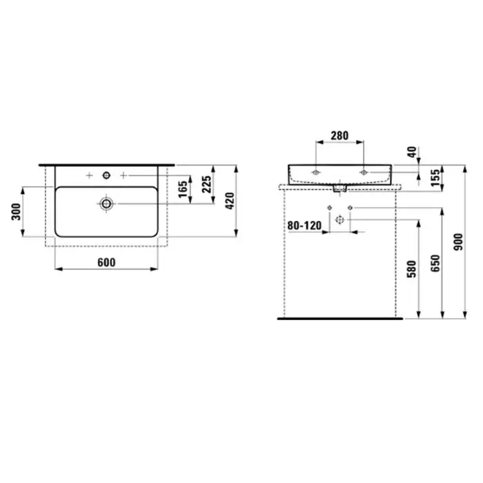 Laufen Val Раковина мини накладная прямоуг. на 1 отв. 55х42х11h см, цвет: белый 8.1628.2.000.109.1