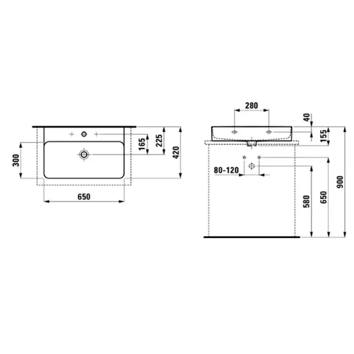Laufen Val Раковина мини накладная прямоуг. на 1 отв. 65х42х11h см, цвет: белый 8.1628.4.000.108.1