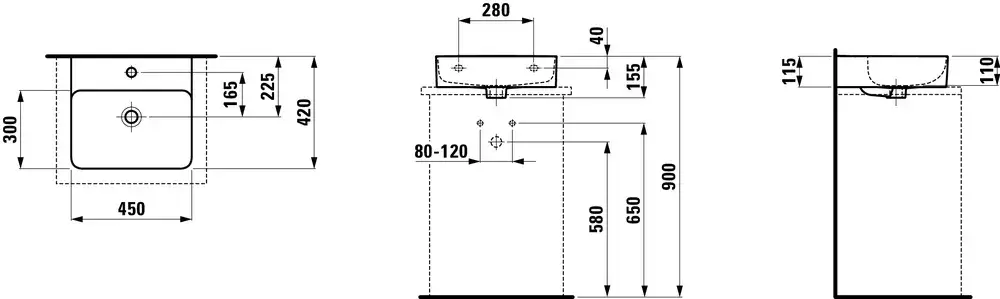 Laufen Val Раковина мини накладная прямоуг. на 1 отв. 42х45х11h см, цвет: белый 8.1628.0.400.109.1