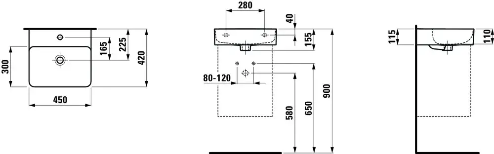 Laufen Val Раковина мини подвесная прямоуг. на 1 отв. 45х42х11h см, цвет: белый 8.1528.1.000.109.1
