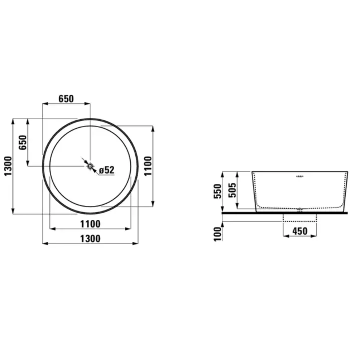 Laufen Val Ванна 130x130xh50,5 cм, свободностоящая, круглая, цвет белый 2.3128.2.000.000.1