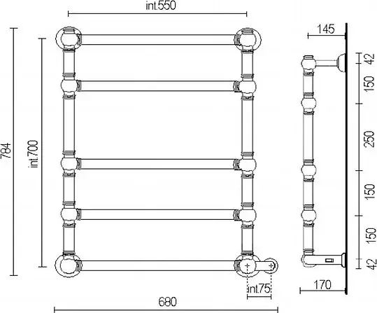 Margaroli Armonia 9-542 Полотенцесушитель электрический 68х83h (55), выкл. справа, цвет: chrome 95425504CRNB