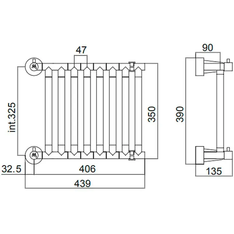 Margaroli Cielo 480 Полотенцесушитель водяной для ГВС 44х39h (int 32,5), вертикальное, цвет: chrome 480S08CR