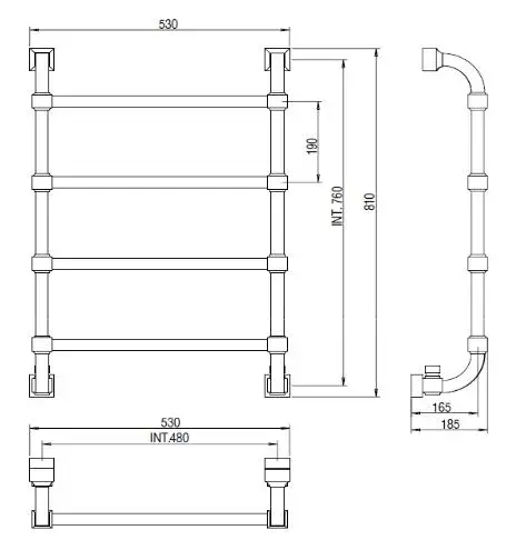 Margaroli Concerto 732 Полотенцесушитель водяной для ГВС 53х81h (int 48), нижнее, цвет: chrome 7324704CRN