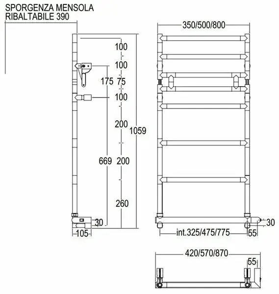 Margaroli Sereno 583/8 Полотенцесушитель электрический с полкой 57х106h с (47,5), цвет: chrome 5834708CRPB