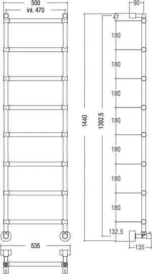 Margaroli Sole 514/14 Полотенцесушитель электрический 53х130h (int 47), выкл. справа, цвет: chrome 5144714CRNB