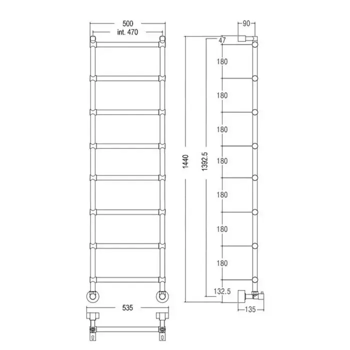 Margaroli Sole 514/14 Полотенцесушитель электрический 53х130h (int 47), выкл. справа, цвет: chrome 5144714CRNB