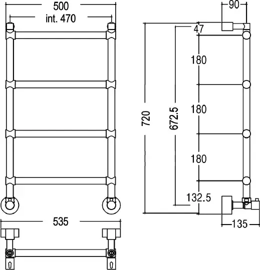 Margaroli Sole 442/TS Полотенцесушитель водяной для ГВС 52,5х71h (int 46), нижнее, цвет: chrome 442TS4604CR