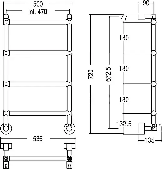 Margaroli Sole 442/TS Полотенцесушитель водяной для ГВС 52,5х71h (int 46), нижнее, цвет: chrome 442TS4604CR