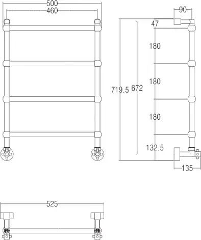 Margaroli Sole 442/TS Полотенцесушитель водяной для ГВС 52,5х71h (int 46), нижнее, цвет: chrome 442TS4604CR