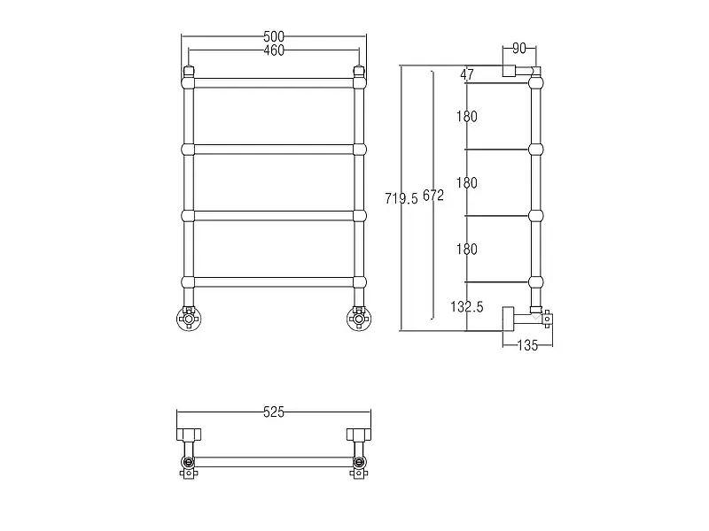 Margaroli Sole 442/TS Полотенцесушитель водяной для ГВС 52,5х71h (int 46), нижнее, цвет: chrome 442TS4604CR