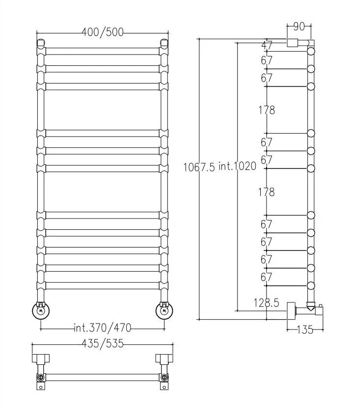 Margaroli Sole 514/14 Полотенцесушитель электрический 53х130h (int 47), выкл. справа, цвет: chrome 5144714CRNB