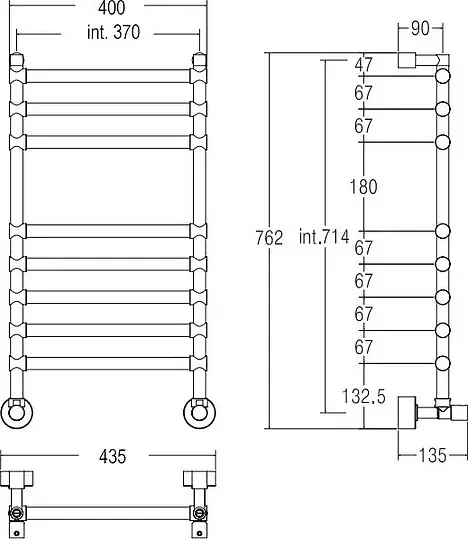 Margaroli Sole 464/8 Полотенцесушитель водяной для ГВС 43,5х76h (int 47), нижнее, цвет: chrome 4643708CRN