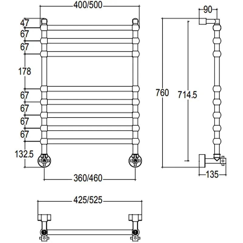 Margaroli Sole 442/TS Полотенцесушитель водяной для ГВС 52,5x89h (int 46) нижнее, цвет: chrome 442TS4605CR