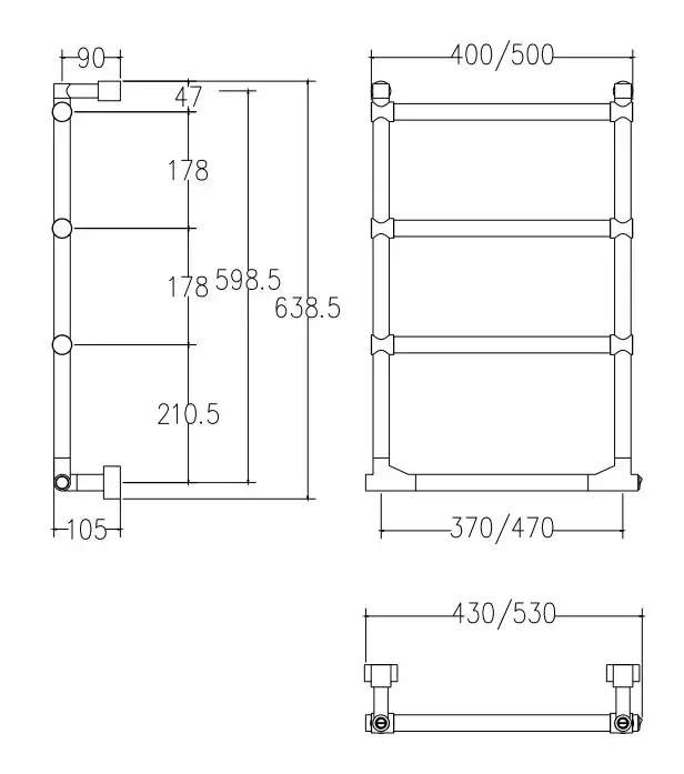Margaroli Sole 464/TQ/8 Полотенцесушитель водяной для ГВС 51х75h (int 46), нижнее, цвет: matt black 464TQ468MB