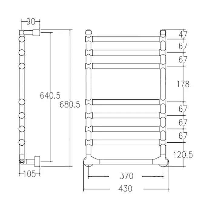 Margaroli Sole 514/8 Полотенцесушитель электрический 43х68h (int 37), выкл. справа, цвет: chrome 51437008CRNB