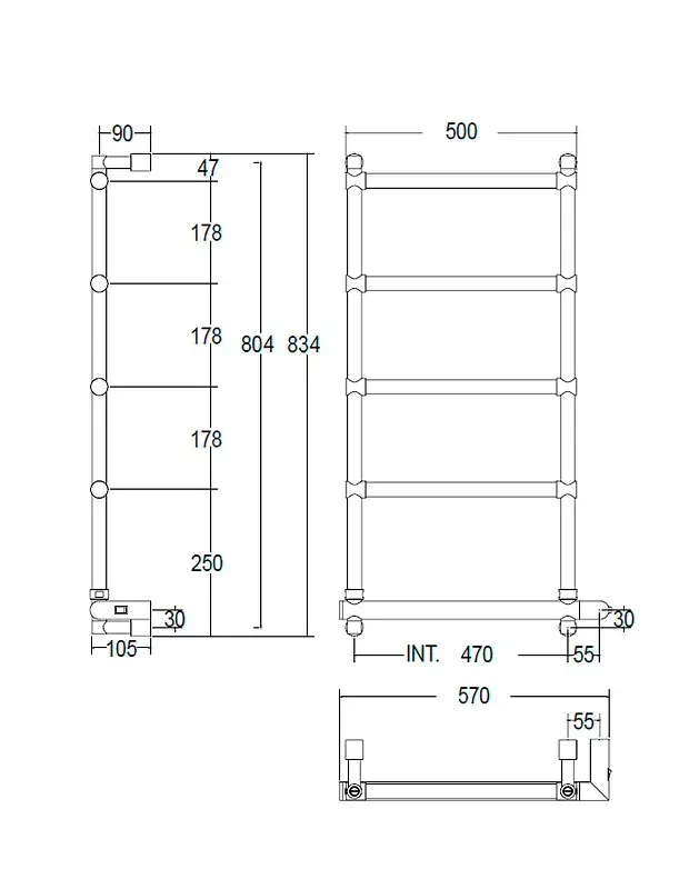 Margaroli Sole 514/14 Полотенцесушитель электрический 53х130h (int 47), выкл. справа, цвет: chrome 5144714CRNB