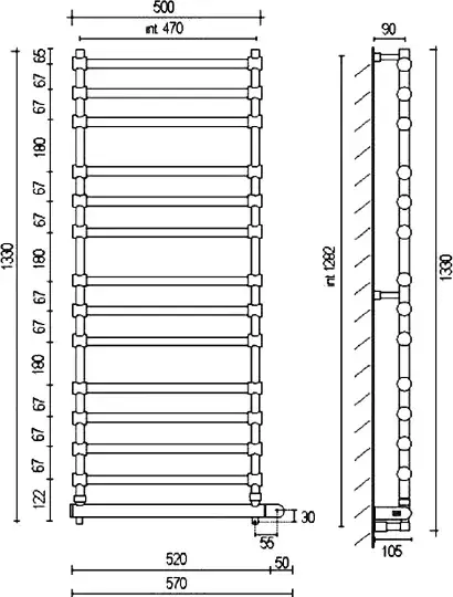 Margaroli Sole 564/14 Полотенцесушитель электрический 57х133h (47), выкл. справа, цвет: chrome 5644714CRNB