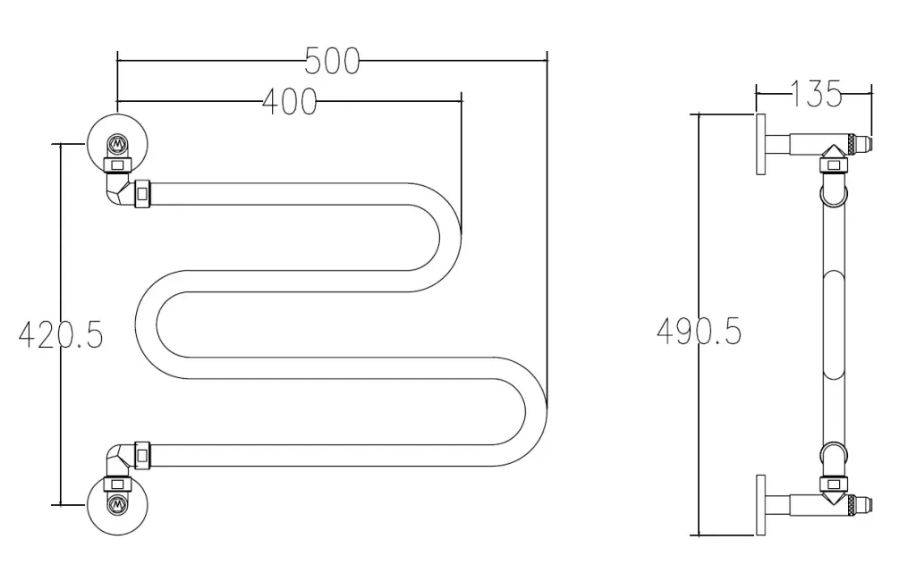 Margaroli Vento 500/SP Полотенцесушитель электрический поворот. 55,5х64h (57,5) нижнее, цвет: chrome 500SPCRB