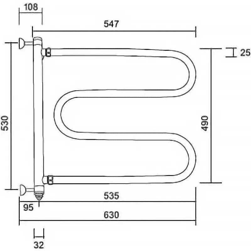 Margaroli Vento 500 Полотенцесушитель электр. поворотный 54,7х57,5h (53) нижнее, цвет: satin crome 500547SAB