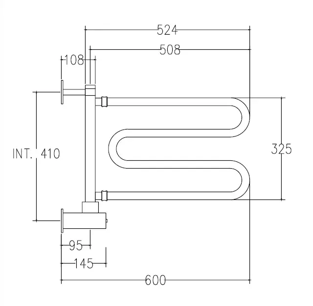 Margaroli Vento 500 Полотенцесушитель электр. поворотный 54,7х57,5h (53) нижнее, цвет: satin crome 500547SAB