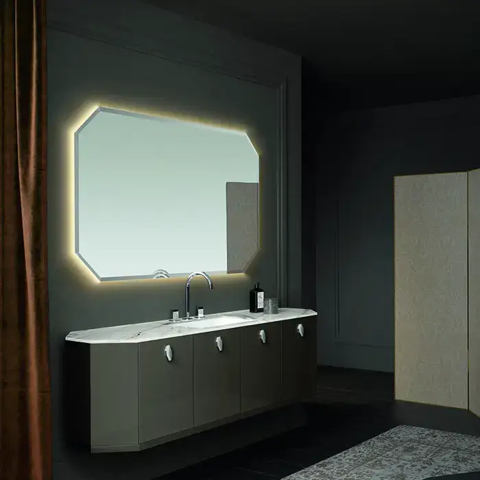 VITAGE milldue edition DANDY Комплект мебели с базой, ручки хром, раковиной PANAMA 47, зеркалом CRYSTAL с подсветкой, 174см, лак высокий глянец подвесной, Цвет: fango luc-121/arabescato-B15