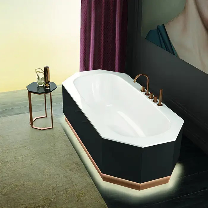 Milldue Edition Dandy Ванна 195х90х52см, отдельностоящая, с сифоном, с подсветкой, облицовка глянц Grafite, цоколь сатин роз зол, ванна белый