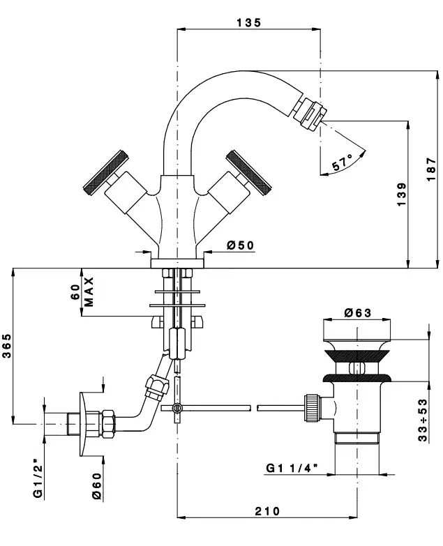 Nicolazzi Arena Смеситель для биде с поворотным изливом на 1 отверстие, цвет: хром 3337CR44