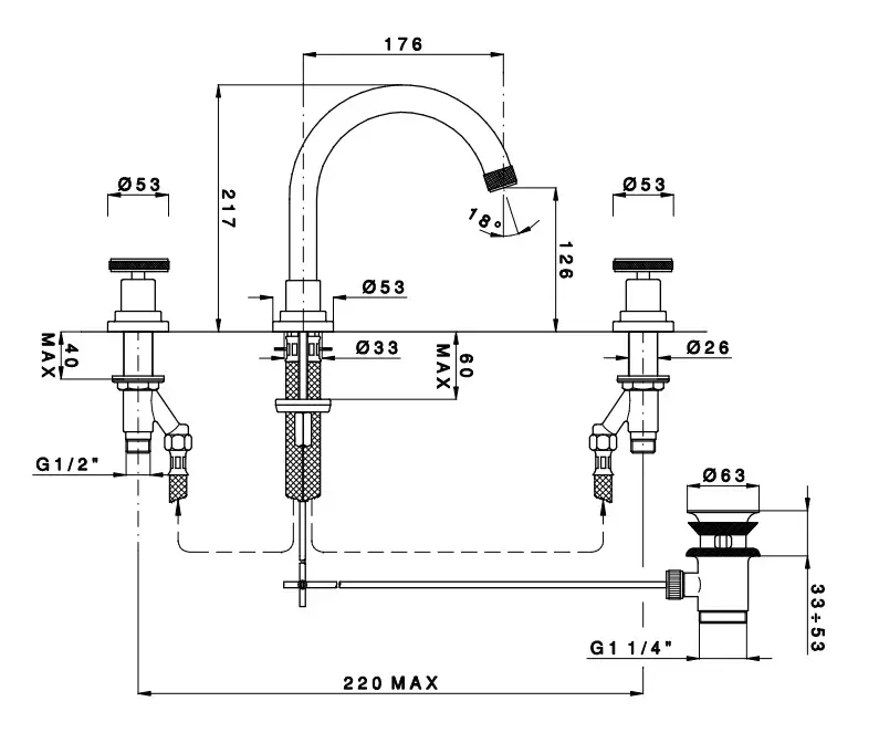 Nicolazzi Arena Смеситель для раковины с авт. сливом на 3 отв., излив 17,6 см, цвет хром 3328CR44