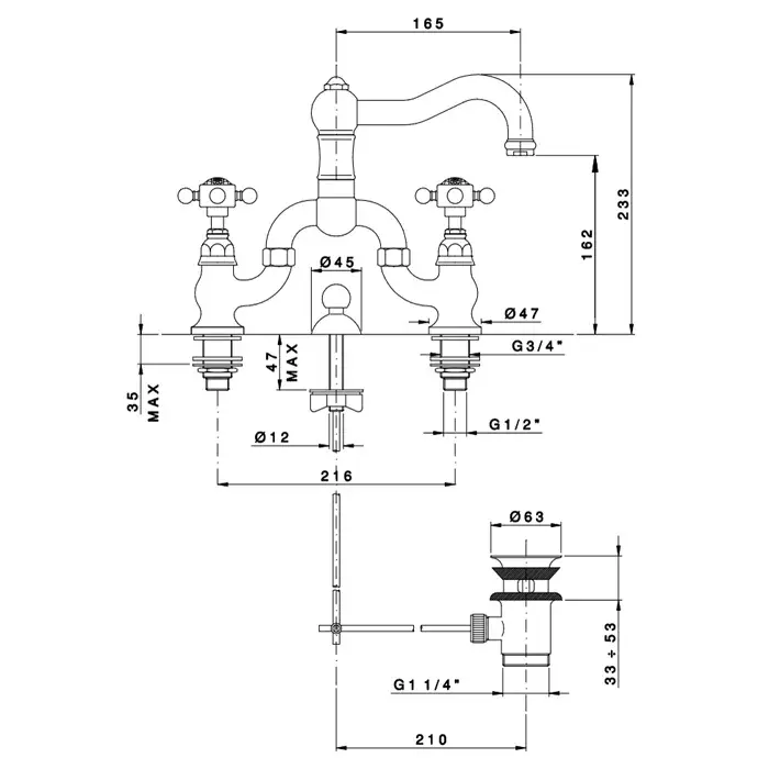 Nicolazzi Cristallo Liberty Смеситель для раковины на 3 отв, излив 16,5 см, цвет хром 1419CR34
