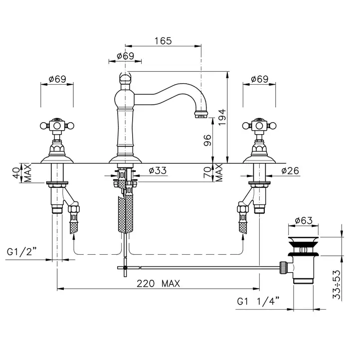 Nicolazzi Cristallo Liberty Смеситель для раковины с авт. сливом на 3 отв., цвет хром 1409CR34