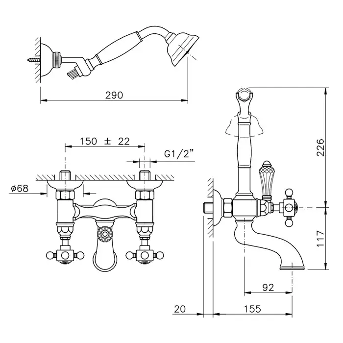 Nicolazzi Cristallo Liberty Смеситель для ванны с душем, излив 15,5 см, цвет хром 1402CR34