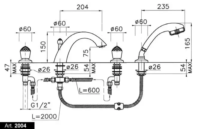 Nicolazzi Cristallo Смеситель на борт ванны, на 4 отверстия, излив 20,1 см, цвет: хром 2004CR22