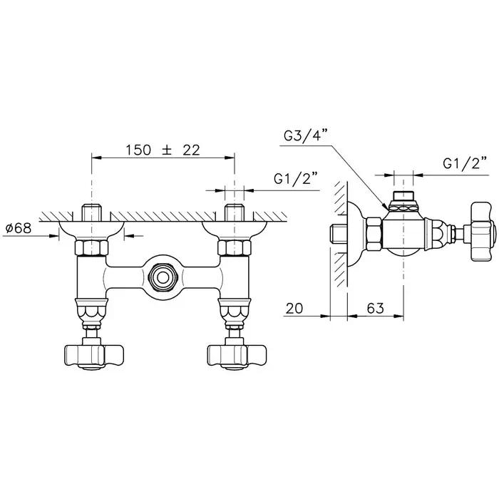 Nicolazzi Dames Anglaises Смеситель для ванны и душа, настенный, с 2мя ручками, цвет хром 1400CR70