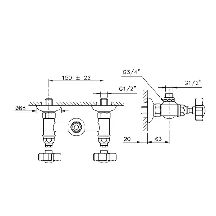 Nicolazzi Dames Anglaises Смеситель для ванны и душа, настенный, с 2мя ручками, цвет хром 1400CR70