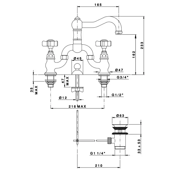 Nicolazzi Dames Anglaises Смеситель для ванны с 2мя ручками, вывод сверху 3/4, цвет хром 1400CR18