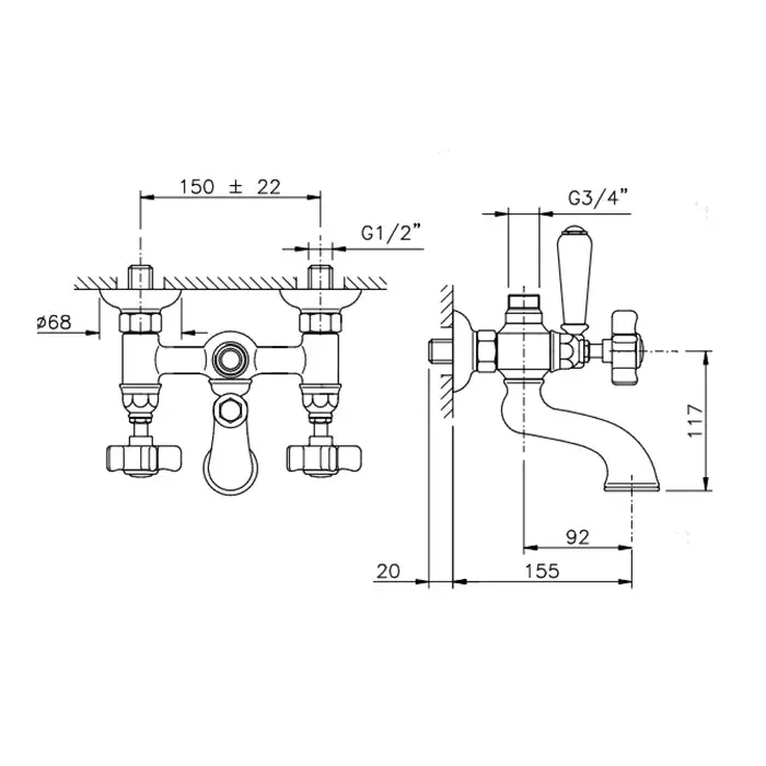 Nicolazzi Dames Anglaises Смеситель для ванны и душа, настенный, с 2мя ручками, цвет хром 1400CR70
