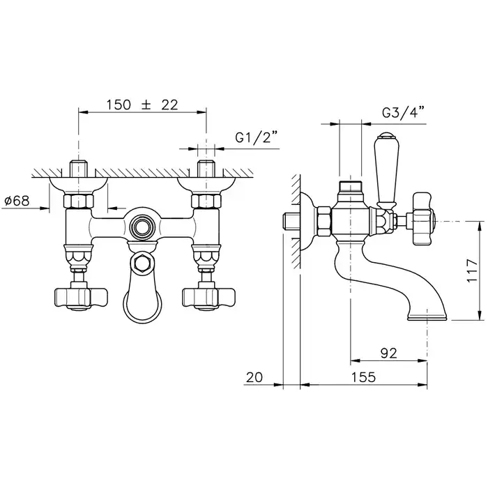 Nicolazzi Dames Anglaises Смеситель для ванны и душа, настенный, с 2мя ручками, цвет хром 1400CR70