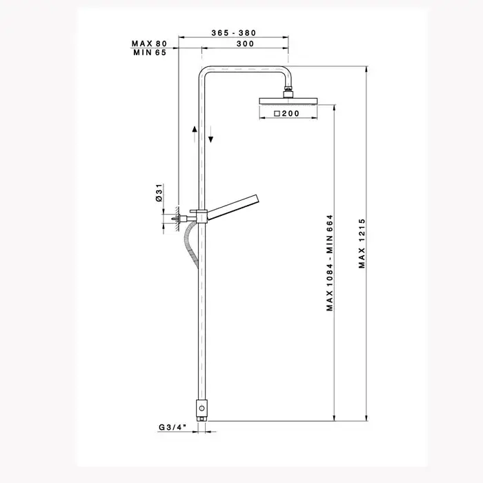 Nicolazzi Doccia Душевая стойка с квадратным верхним душем 20 см, цвет: хром 5715WSCR20